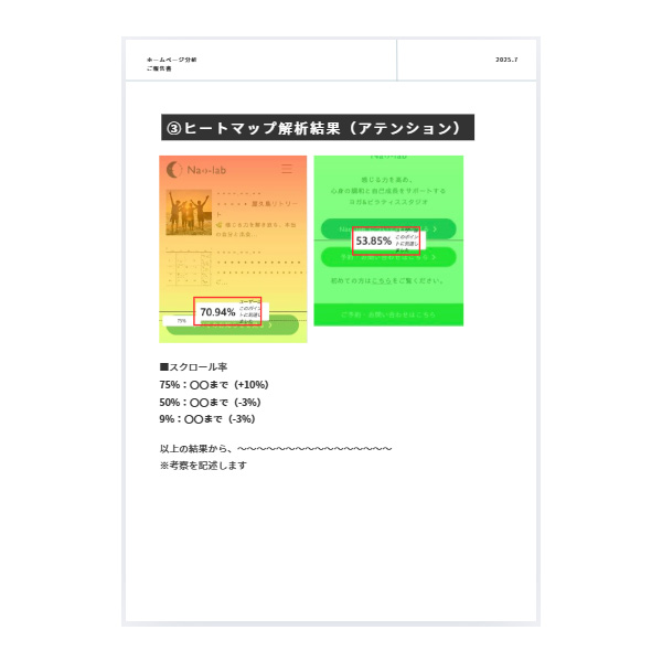 クリックやスクロールの動きをもとに、デザインや導線の見直しをご提案します。
